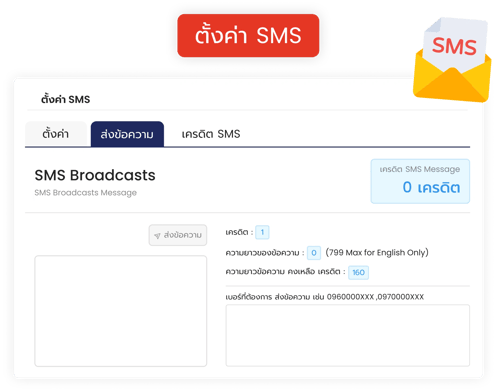 บริการ SMS เป็นอีกหนึ่งช่องทางที่ทำให้ร้านค้าของคุณเข้าถึงกลุ่มลูกค้าได้ง่ายยิ่งขึ้น และยังช่วยให้ลูกค้าของคุณและคุณรู้ทันทุกการสั่งซื้อ