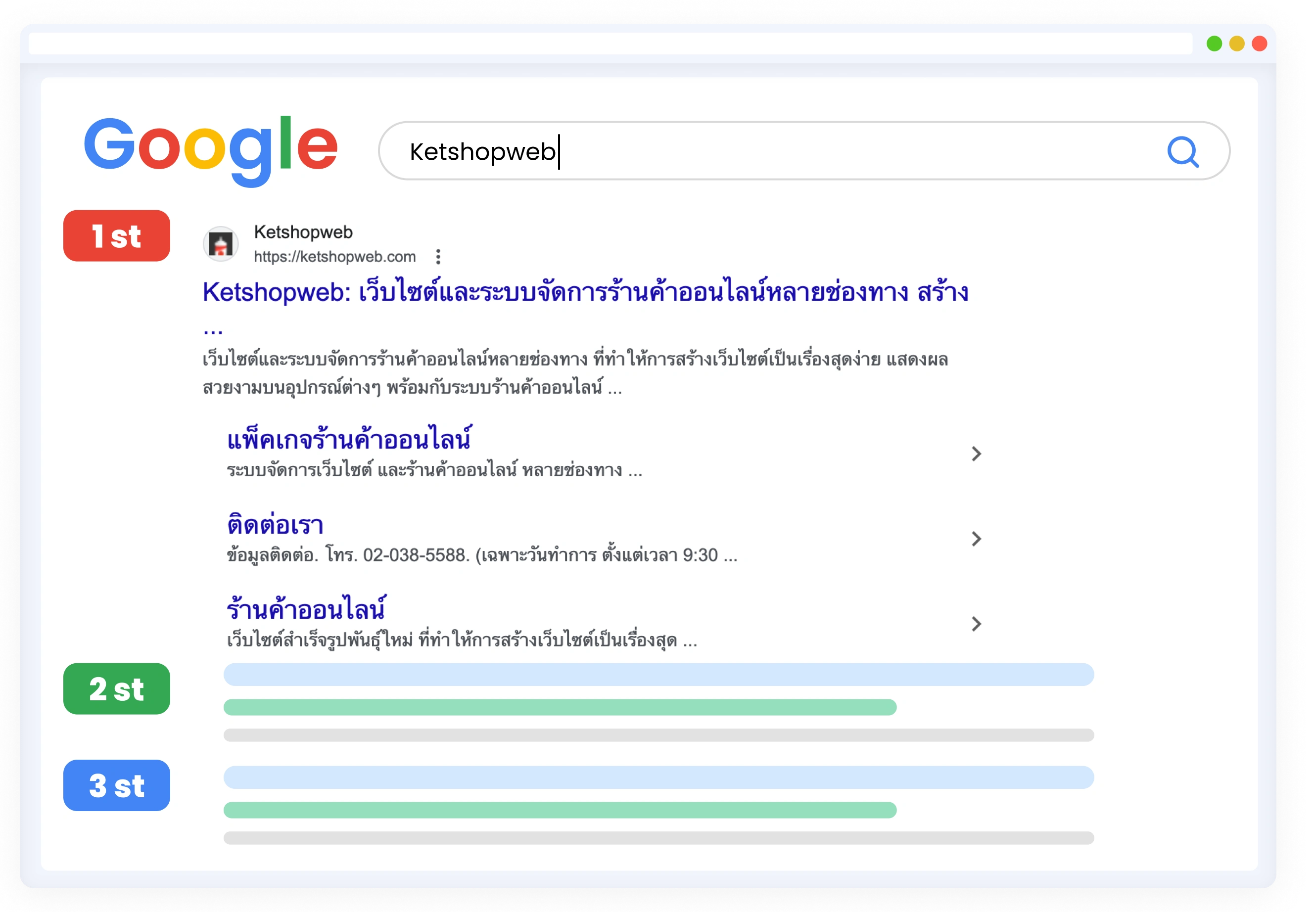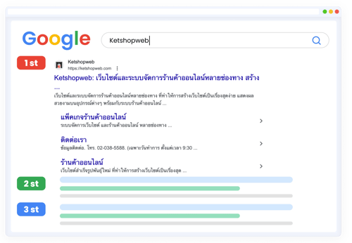 เพราะเครื่องมือจาก Ketshopweb อยู่ในมาตรฐานโครงสร้างตามที่ Google กำหนดไว้ทำให้มั่นใจได้ว่า สามารถทำให้ถูกพบในหน้าการค้นหาของ Google ได้อย่างชิว ๆ