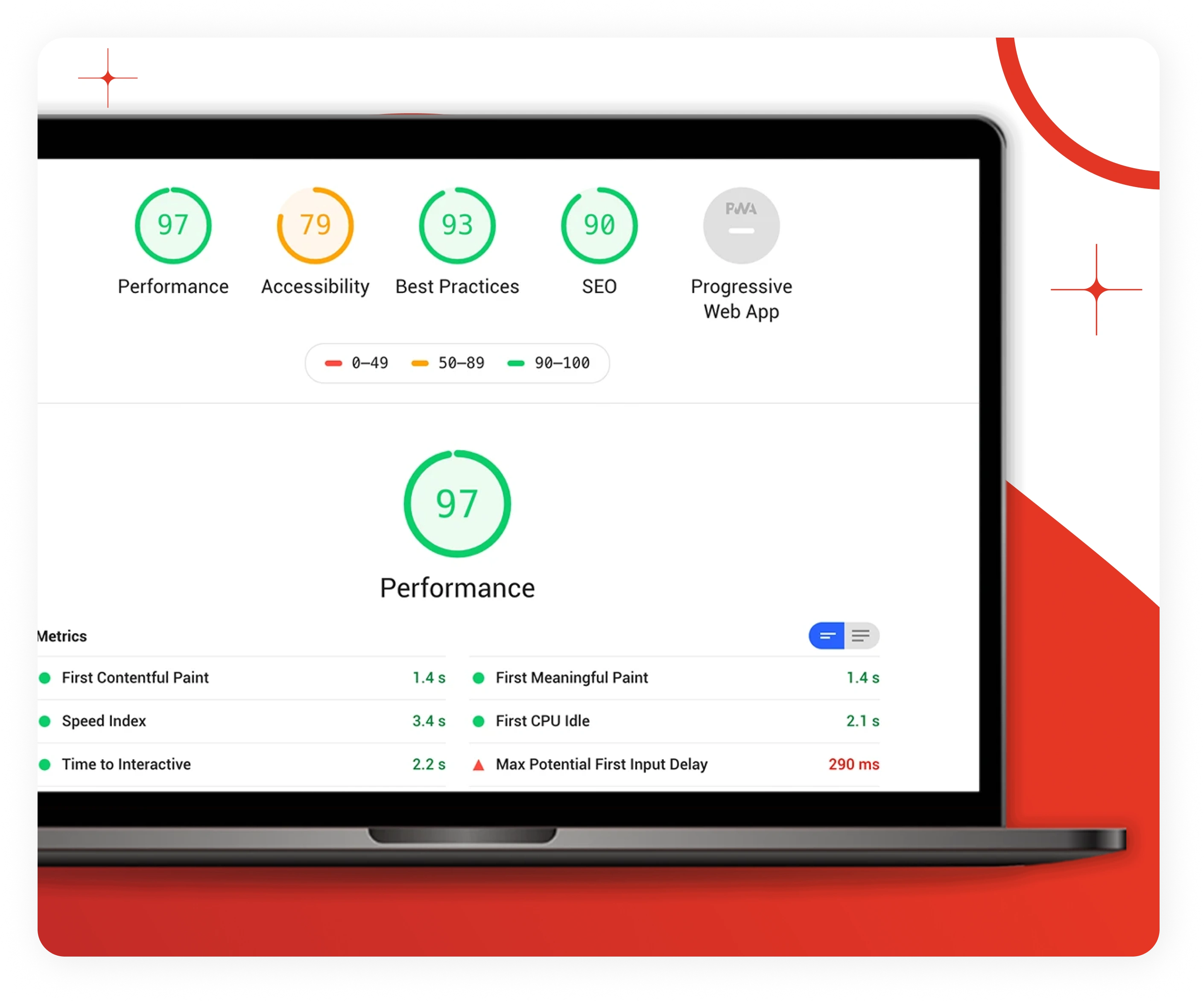Lighthouse คือเครื่องมือตรวจ SEO จาก Google ซึ่งระบบของ Ketshopweb สามารถทำคะแนนในด้าน Performance ได้มากกว่า 80% ที่ทำให้มั่นใจได้ว่า โครงสร้างถูกหลักแน่นอน