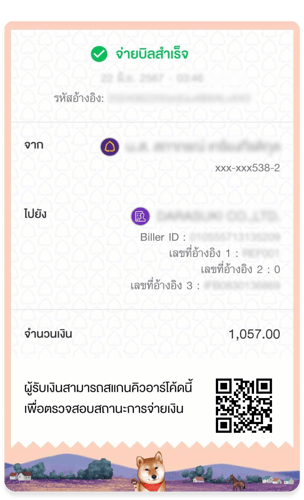 ทำให้การชำระเงินเป็นเรื่องง่ายด้วยการโอนผ่านบัญชีธนาคาร ช่องทางการชำระเงินที่สะดวกและรวดเร็ว สามารถทำได้ทุกที่ทุกเวลา เพียงแค่ใช้แอปธนาคารบนมือถือของคุณ