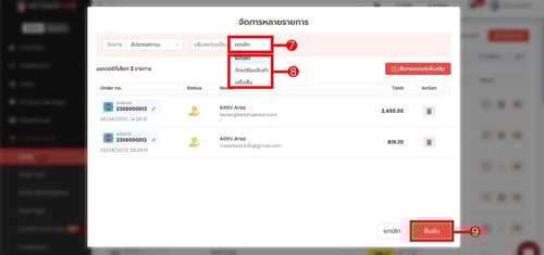 การจัดการออเดอร์หลายรายการ ใช้สำหรับการอัพเดทสถานะออเดอร์พร้อมกัน ครั้งละหลายออเดอร์ เช่น ในกรณีที่จัดส่งสินค้าแล้ว ก็สามารถปรับสถานะออเดอร์เป็นเสร็จสิ้นพร้อมกันได้ในครั้งเดียว โดยการปรับสถานะออเดอร์พร้อมกันหลายรายการนั้น สามารถปรับได้แค่ 3 สถานะเท่านั้น ได้แก่
