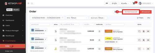 (ตำแหน่งที่ 4) จะเข้าสู่หน้าการจัดการออเดอร์ คลิก "จัดการหลายออเดอร์"