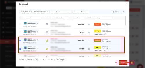 (ตำแหน่งที่ 6) เลือกออเดอร์ จากนั้นคลิก "ยืนยัน"