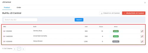 3. ในแท็บสินค้า ให้คลิกที่ปุ่ม "ดึงสินค้าจาก "JD Central" (ตำแหน่งที่ 3)