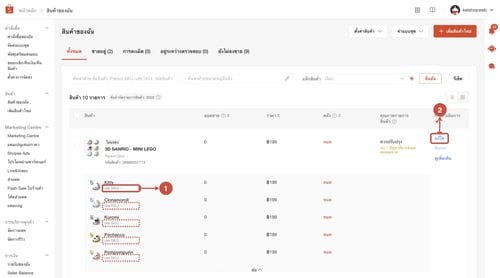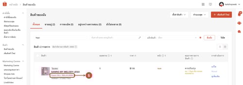 (ตำแหน่งที่ 1) ตรวจสอบ SKU ของสินค้าที่ต้องการดึงเข้า Ketshopweb หากสินค้าของคุณยังไม่มี SKU จะต้องทำการใส่ให้เรียบร้อย