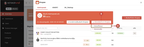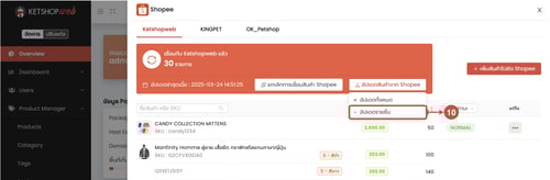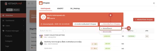 (ตำแหน่งที่ 9) จากนั้น คลิกปุ่ม 'อัปเดตสินค้าจาก Shopee'