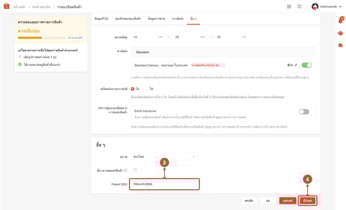 (ตำแหน่งที่ 3) ที่ด้านล่างในส่วนข้อมูลอื่น ๆ ระบุ Parent SKU