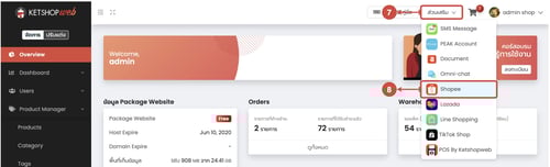 จากนั้น เข้าสู่ระบบการจัดการเว็บไซต์ Ketshopweb