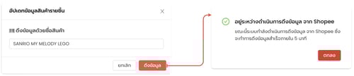 จะแสดงหน้าต่างให้ระบุชื่อสินค้าที่ต้องการดึงเข้า Ketshopweb จากนั้น คลิกที่ปุ่ม 'ดึงข้อมูล' ระบบจะดำเนินการดึงสินค้า สามารถคลิกปุ่ม 'ตกลง' ได้เลย