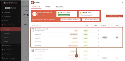 (ตำแหน่งที่ 5) เมื่ออัปเดตเสร็จสิ้น สินค้าก็จะมี SKU พร้อมที่จะดึงเข้าระบบ Ketshopweb
