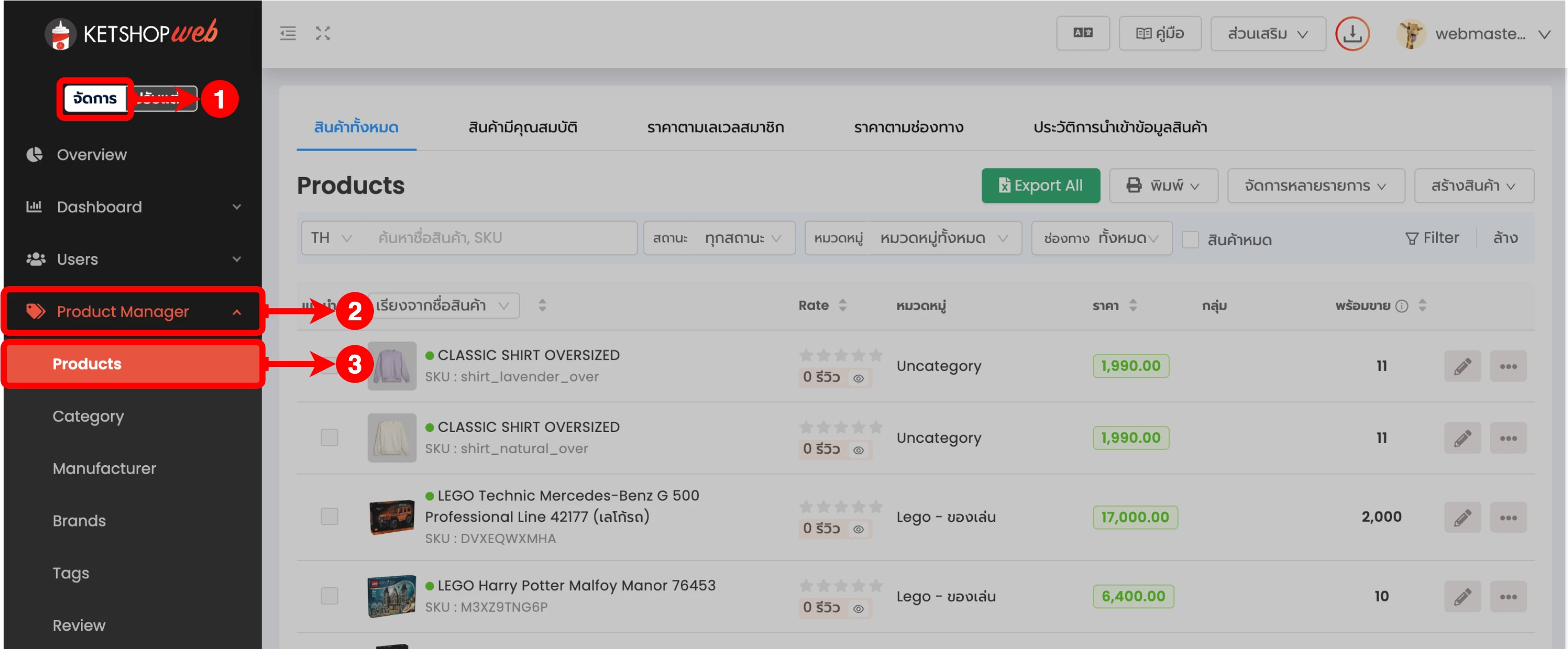 (ตำแหน่งที่ 3) เลือกเมนูย่อย 'Products'