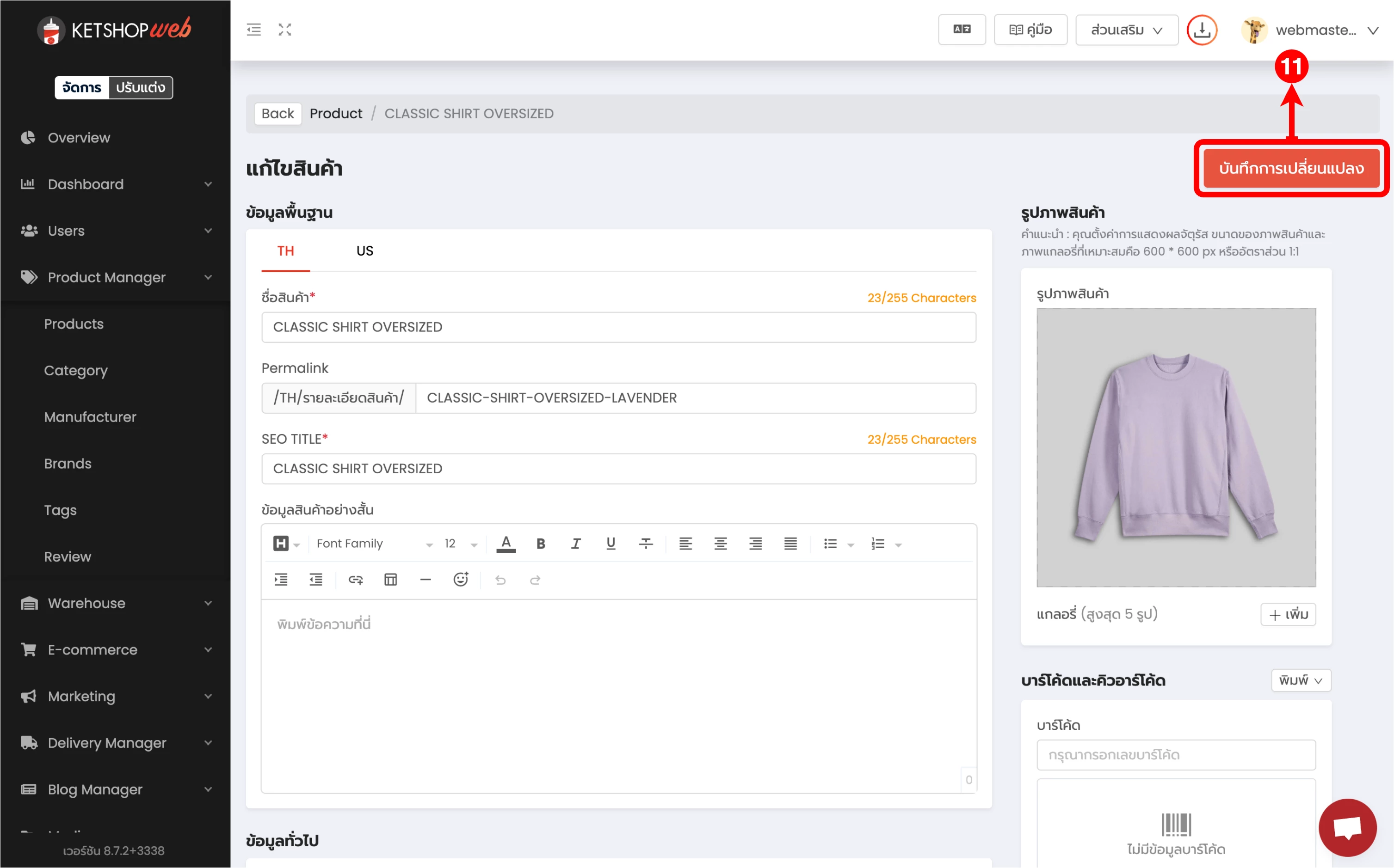 (ตำแหน่งที่ 11) คลิกปุ่ม 'บันทึกการเปลี่ยนแปลง' ที่มุมขวาด้านบนของหน้า เพื่อบันทึกการแก้ไขทั้งหมด