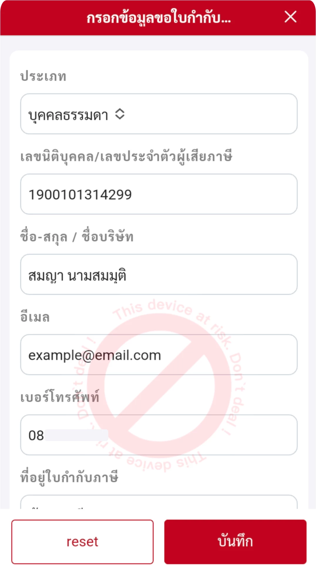 กรอกข้อมูลสำหรับขอใบกำกับภาษีให้ถูกต้องครบถ้วน