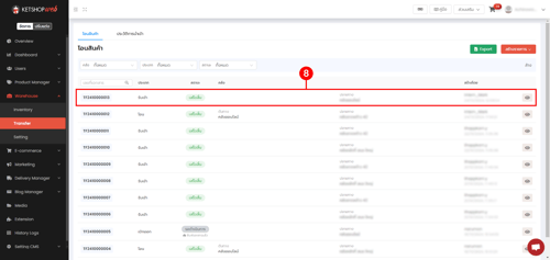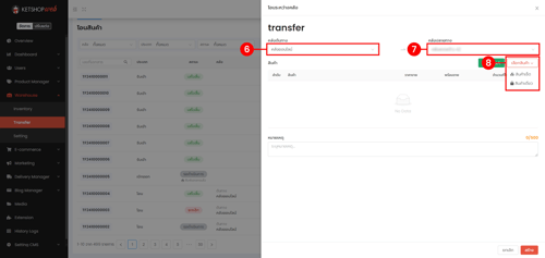 (ตำแหน่งที่ 8) คลิก "เลือกสินค้า" เพื่อเลือกสินค้าที่ต้องการโอน
