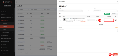 (ตำแหน่งที่ 10) กรอกจำนวนสินค้าในคลังที่ต้องการโอน