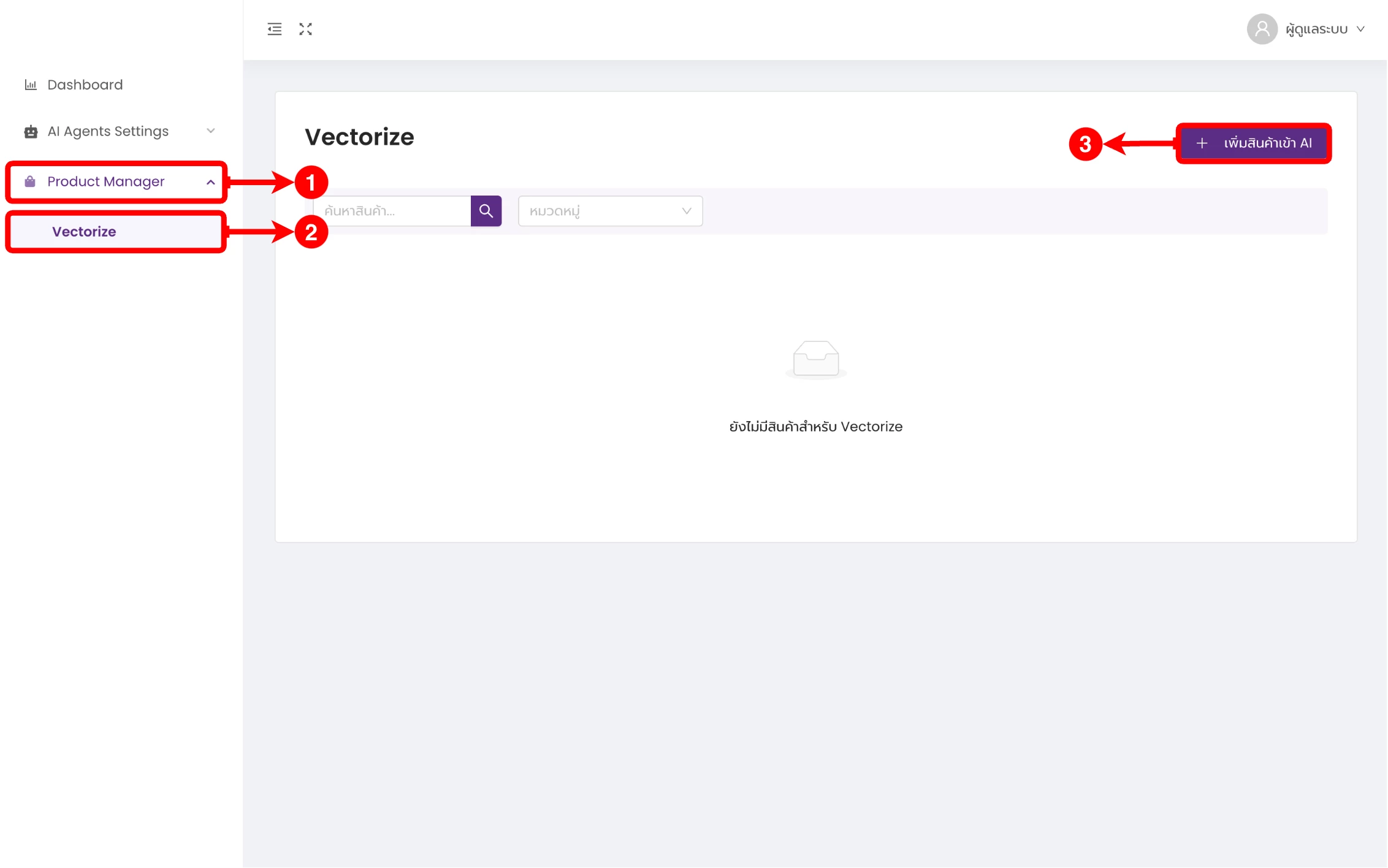 สินค้าที่ถูกเพิ่มเข้า AI เรียบร้อยแล้ว จะแสดงในหน้า Vectorize