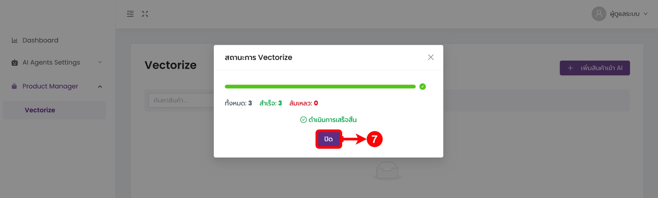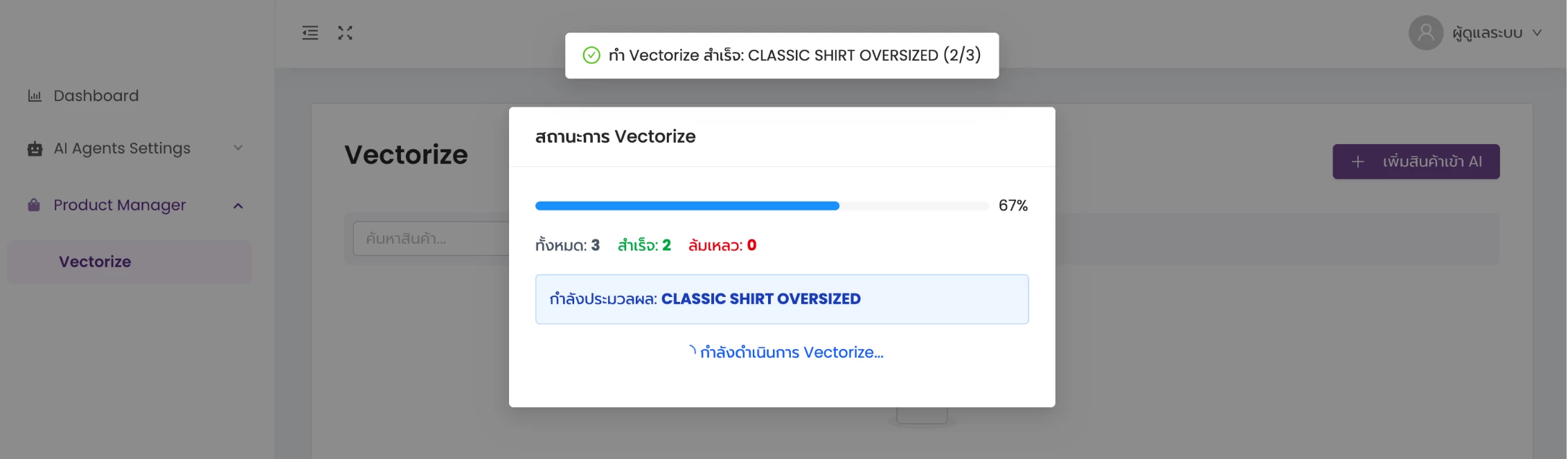 ในระหว่างดำเนินการเพิ่มสินค้าเข้า AI กรุณาอย่าปิดแท็บจนกว่าการดำเนินการจะเสร็จสิ้น