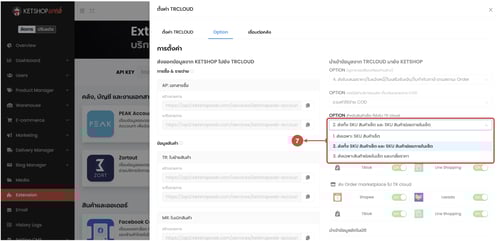 (ตำแหน่งที่ 7) กรณีร้านค้ามีสินค้าเซ็ต สามารถตั้งค่า Option การส่งสินค้าเซ็ตไป TRCLOUD ได้