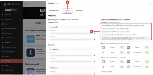 (ตำแหน่งที่ 5) เลือก Option การส่งคำสั่งซื้อไปสร้างเอกสารใน TRCLOUD โดยมีทั้งหมด 4 รูปแบบ