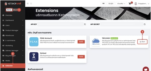 เชื่อมข้อมูลออเดอร์ และสินค้าจากระบบ ketshopweb ไปยัง TRCLOUD (ระบบบัญชี)