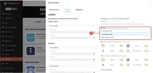 (ตำแหน่งที่ 6) กรณีมีค่าบริการขนส่งเก็บปลายทาง (COD) สามารถตั้งค่า Option การส่งค่าใช้จ่าย COD ได้