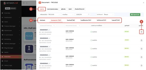 4. ส่งใบเสนอราคา/ใบแจ้งหนี้/ใบเสร็จรับเงิน/ใบกำกับภาษี ตามสถานะ Order