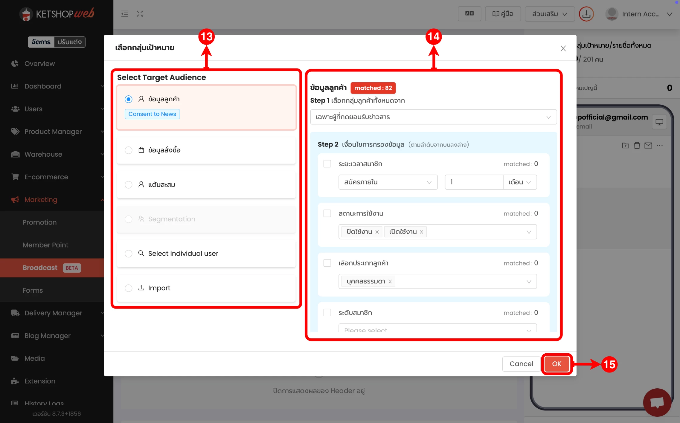 (ตำแหน่งที่ 13) เลือกกลุ่มเป้าหมาย