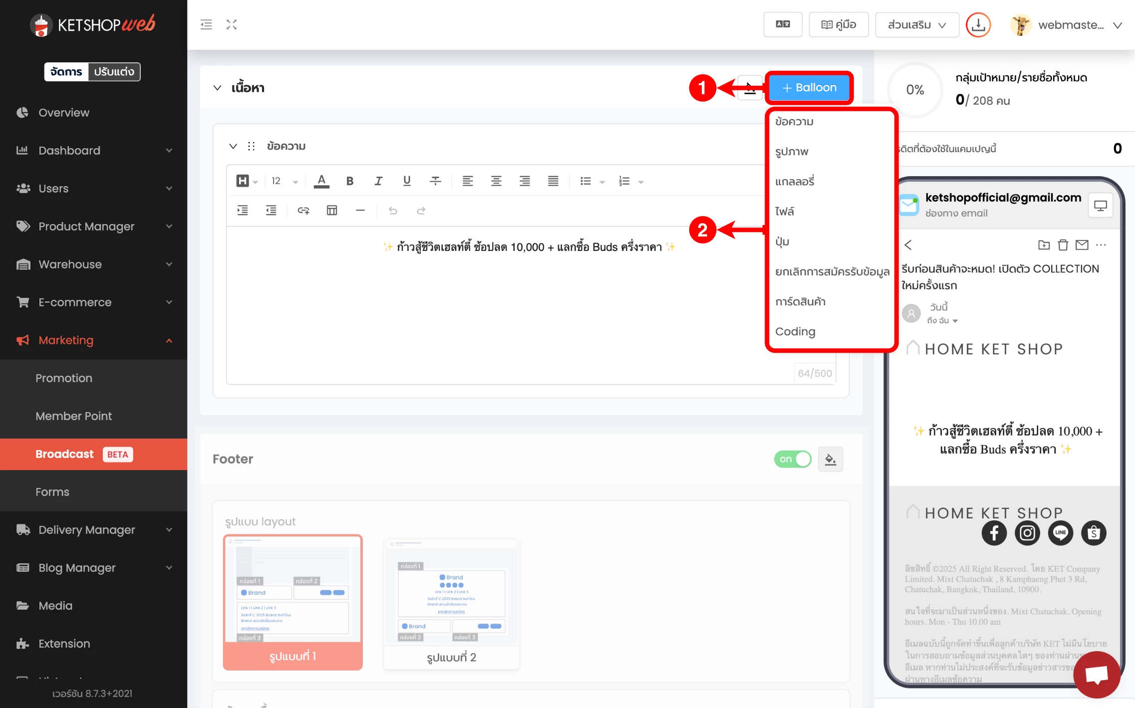 การสร้าง Email Broadcast