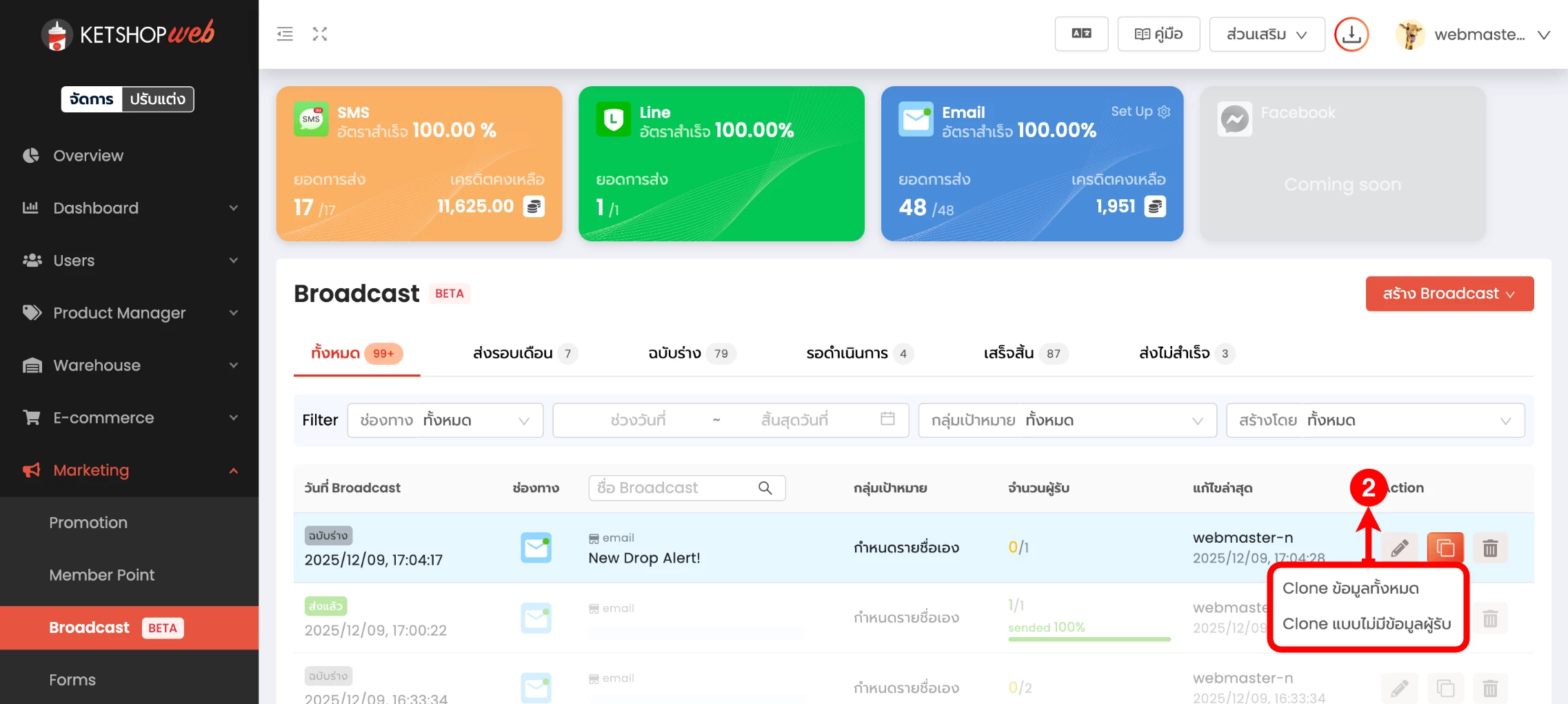 การโคลน Email Broadcast (Duplicate)