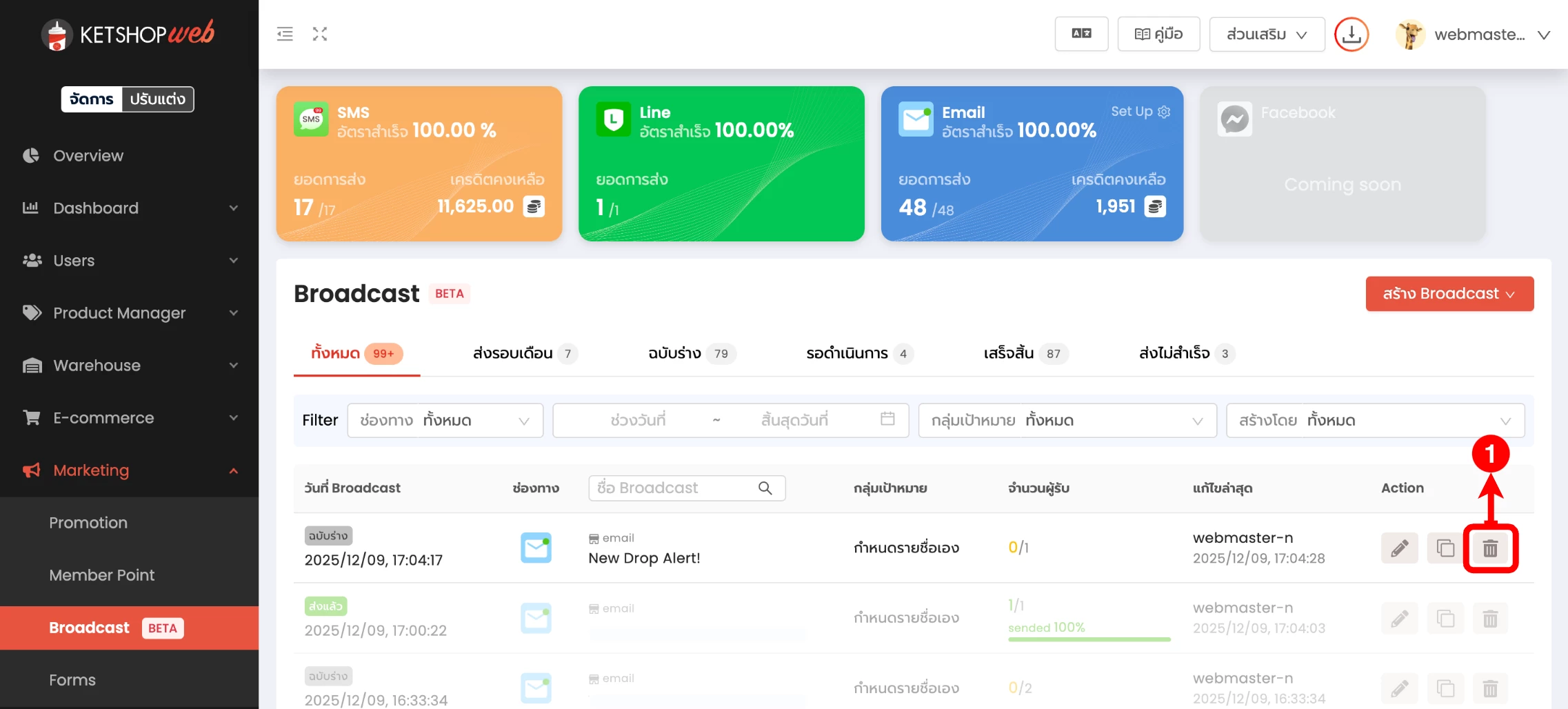 การลบ Email Broadcast