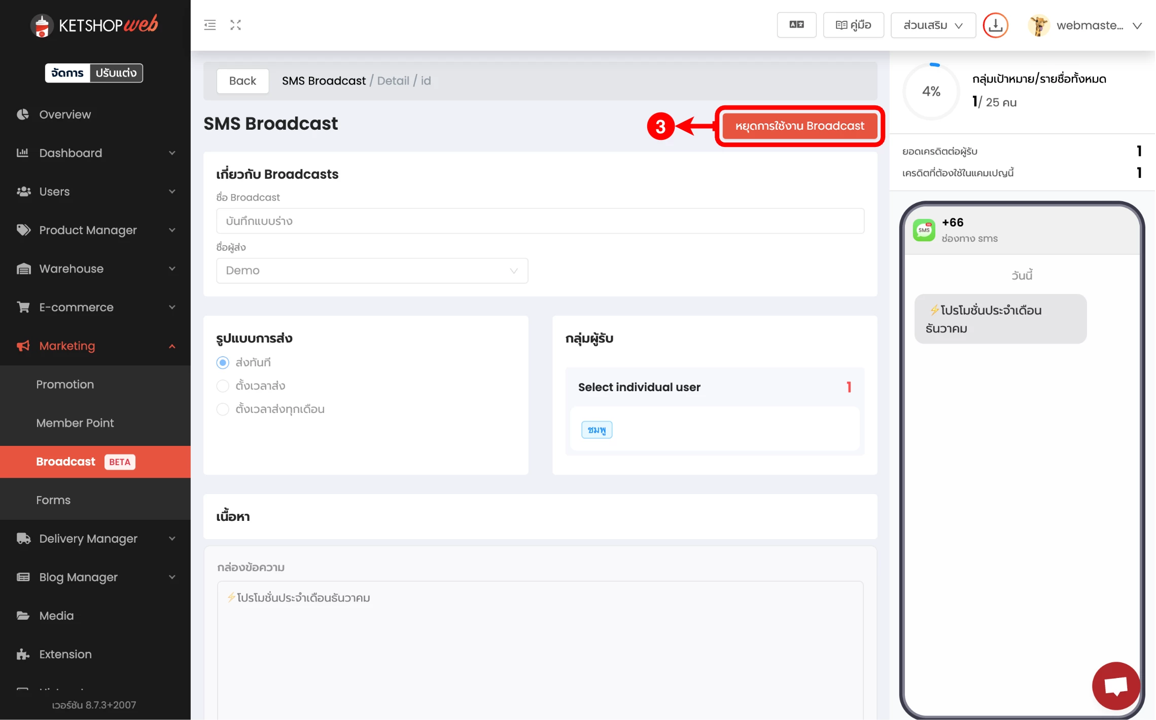 >>> การตั้งค่า การใช้งาน SMS Broadcast <<<