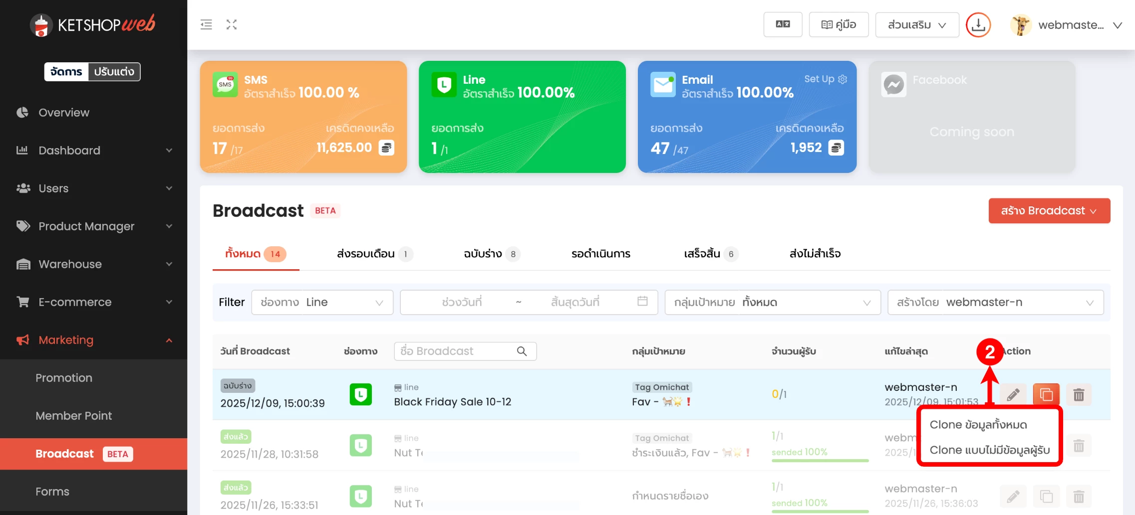 สำหรับการ SMS Broadcast และ Email Broadcast สามารถดูวิธีได้ที่ด้านล่างนี้