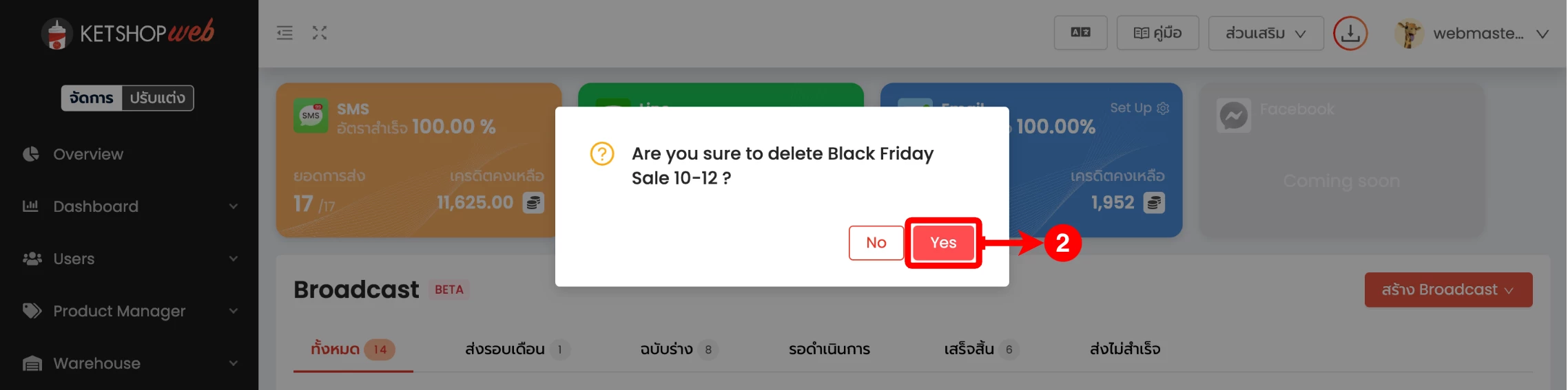 (ตำแหน่งที่ 2) คลิกปุ่ม 'Yes' เพื่อทำการยืนยันการลบ