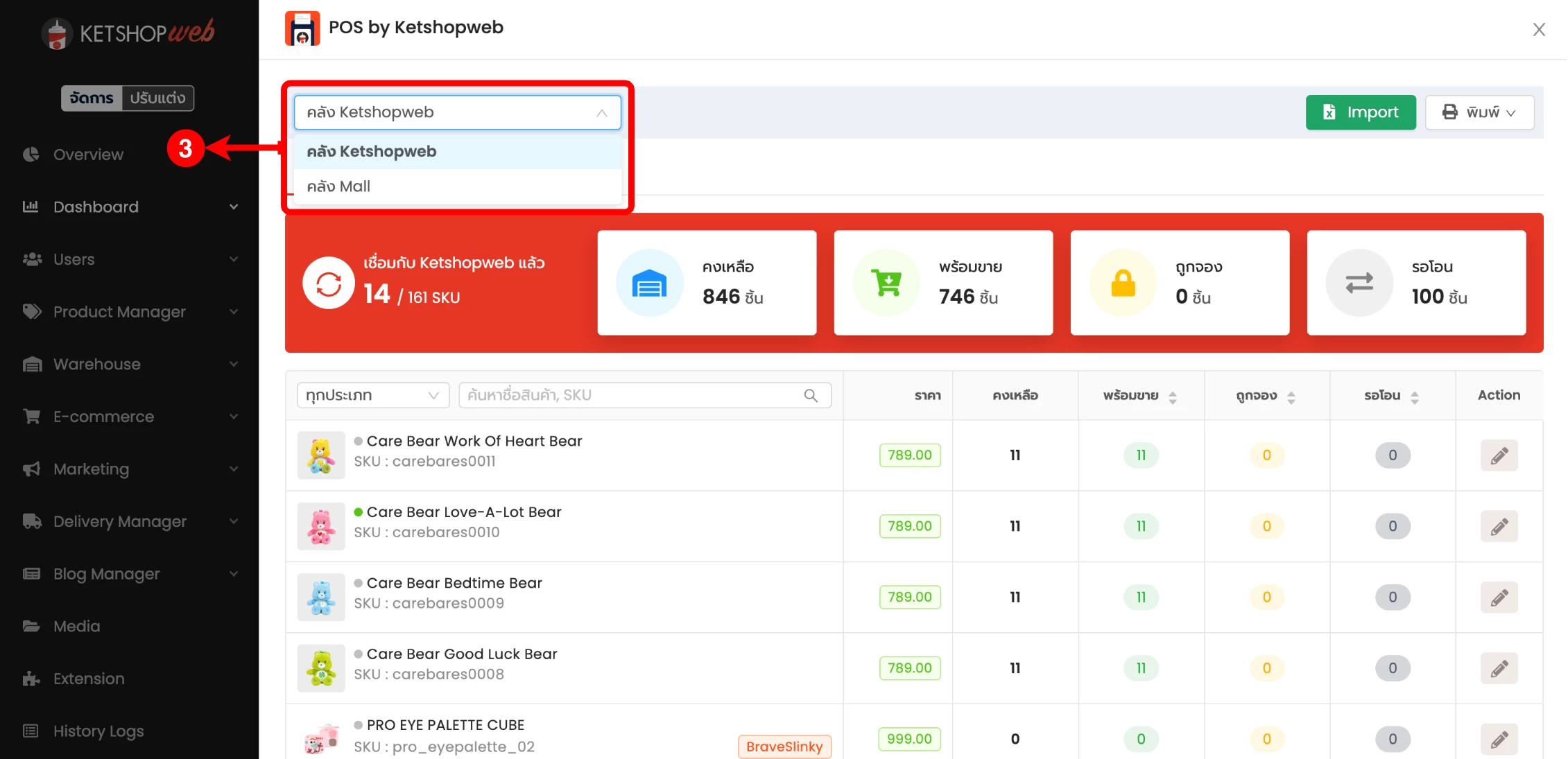 (ตำแหน่งที่ 2) เลือกเมนูย่อย 'POS By Ketshopweb'
