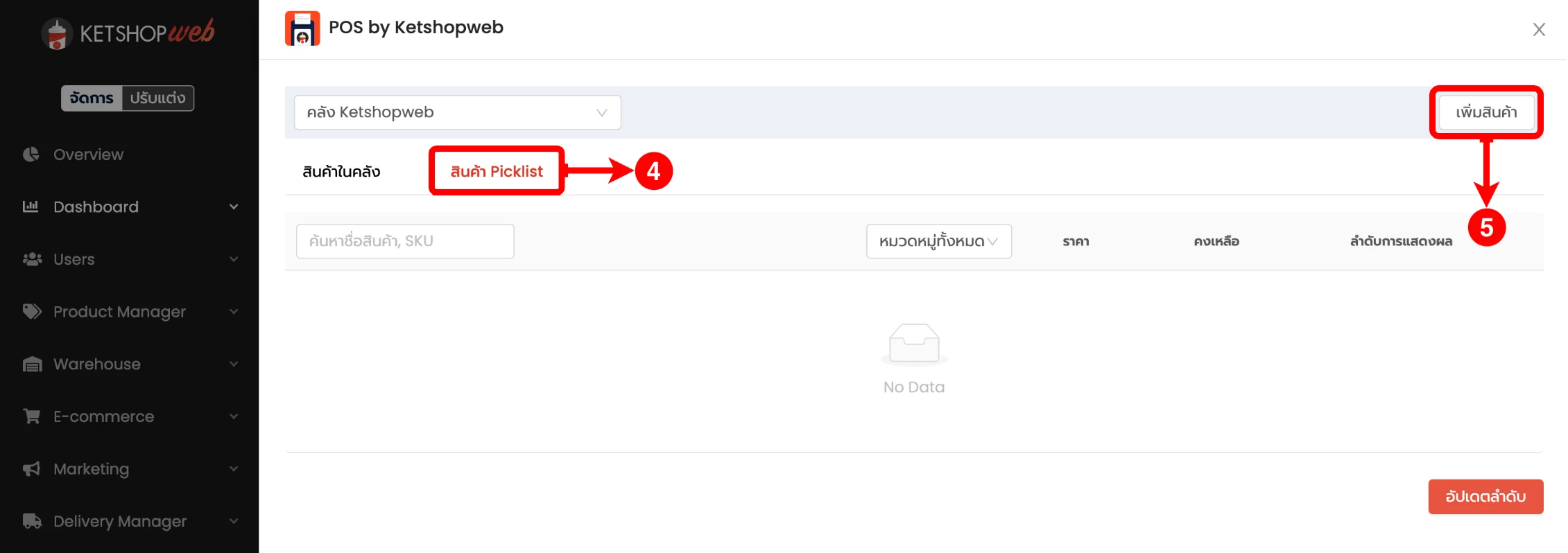 (ตำแหน่งที่ 4) เลือกแท็บ 'สินค้า Picklist'