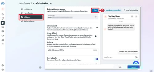 (ตำแหน่งที่ 4) คลิก "ปลั๊กอินแชท" จากนั้น คลิก “ตั้งค่า”