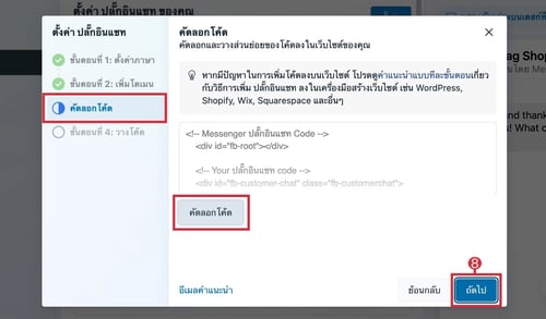 (ตำแหน่งที่ 8) คลิก "คัดลอกโค้ด" จากนั้น คลิก "ถัดไป"