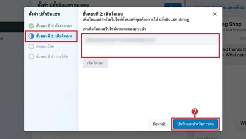 (ตำแหน่งที่ 7) คลิก "บันทึกและดำเนินการต่อ" หลังจาก การเพิ่มโดเมน (ชื่อเว็บไซต์ที่ต้องการ) ขั้นตอนที่ 2