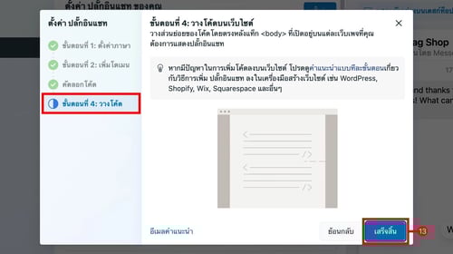 จากนั้นนำโค้ดที่ได้ไปติดตั้งในระบบจัดการร้านค้า Ketshopweb