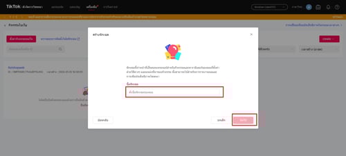 หลังจากนั้นTiktok จะส่งรหัสไปที่อีเมล ที่ใช้ลงทะเบียน และจึงนำรหัสมายืนยัน