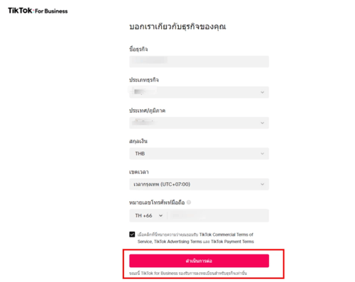 2. สำหรับลูกค้าที่ลงทะเบียนใหม่ ให้กรอกข้อมูล "เกี่ยวกับธุรกิจของตนเอง" และคลิกที่ ถัดไป