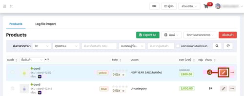 (ตำแหน่งที่ 4) คลิก "ไอคอนดินสอ" ของสินค้าที่ต้องการพิมพ์บาร์โค้ด