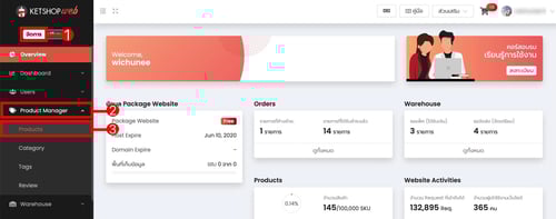 (ตำแหน่งที่ 3) เลือกที่เมนู "Products"