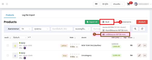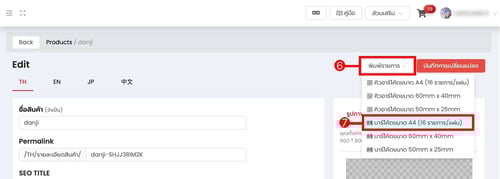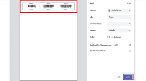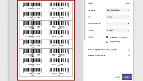 (ตำแหน่งที่ 6) คลิก "พิมพ์บาร์โค้ด"