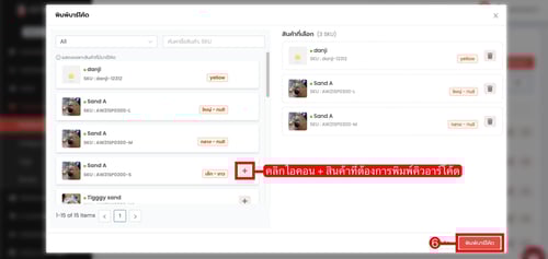 จะแสดงรายการสินค้าที่มีบาร์โค้ด จากนั้นเลือกสินค้าที่ต้องการพิมพ์