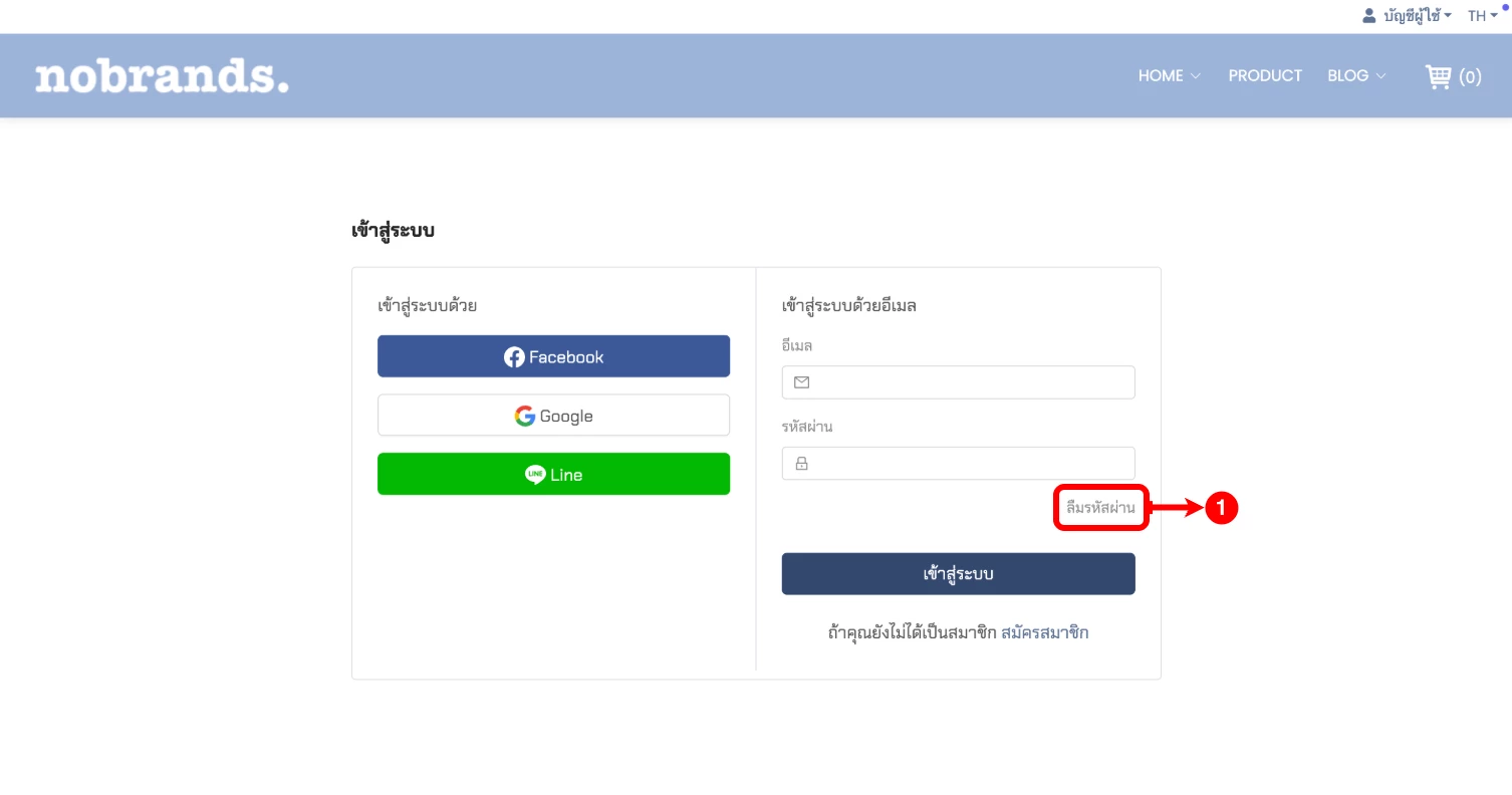 (ตำแหน่งที่ 1) คลิก 'ลืมรหัสผ่าน'