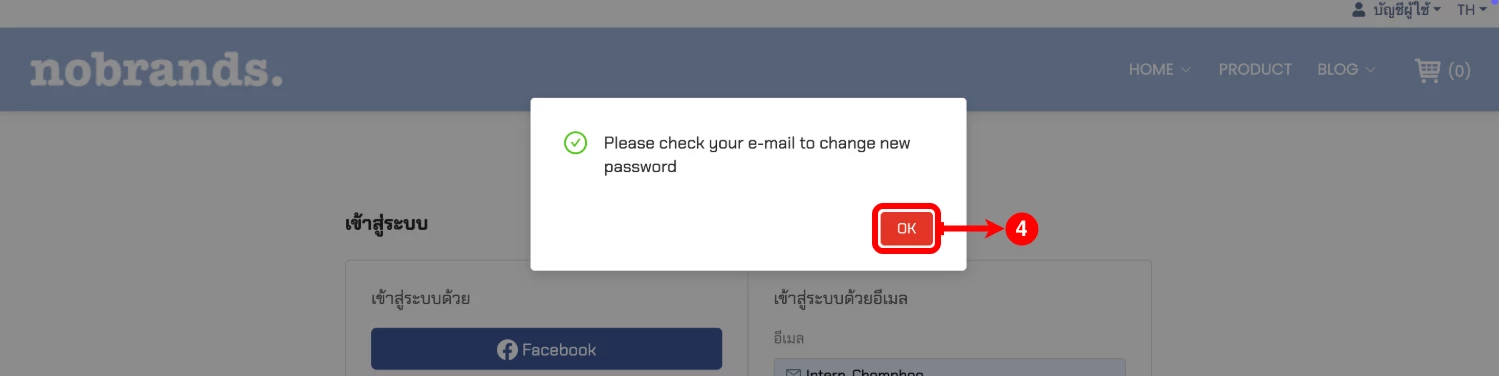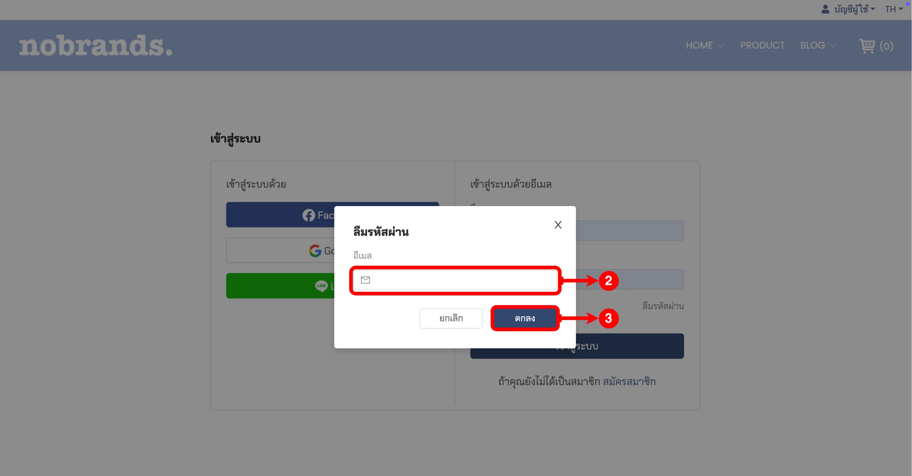 (ตำแหน่งที่ 2) ระบุอีเมล เพื่อที่จะตั้งรหัสผ่านใหม่