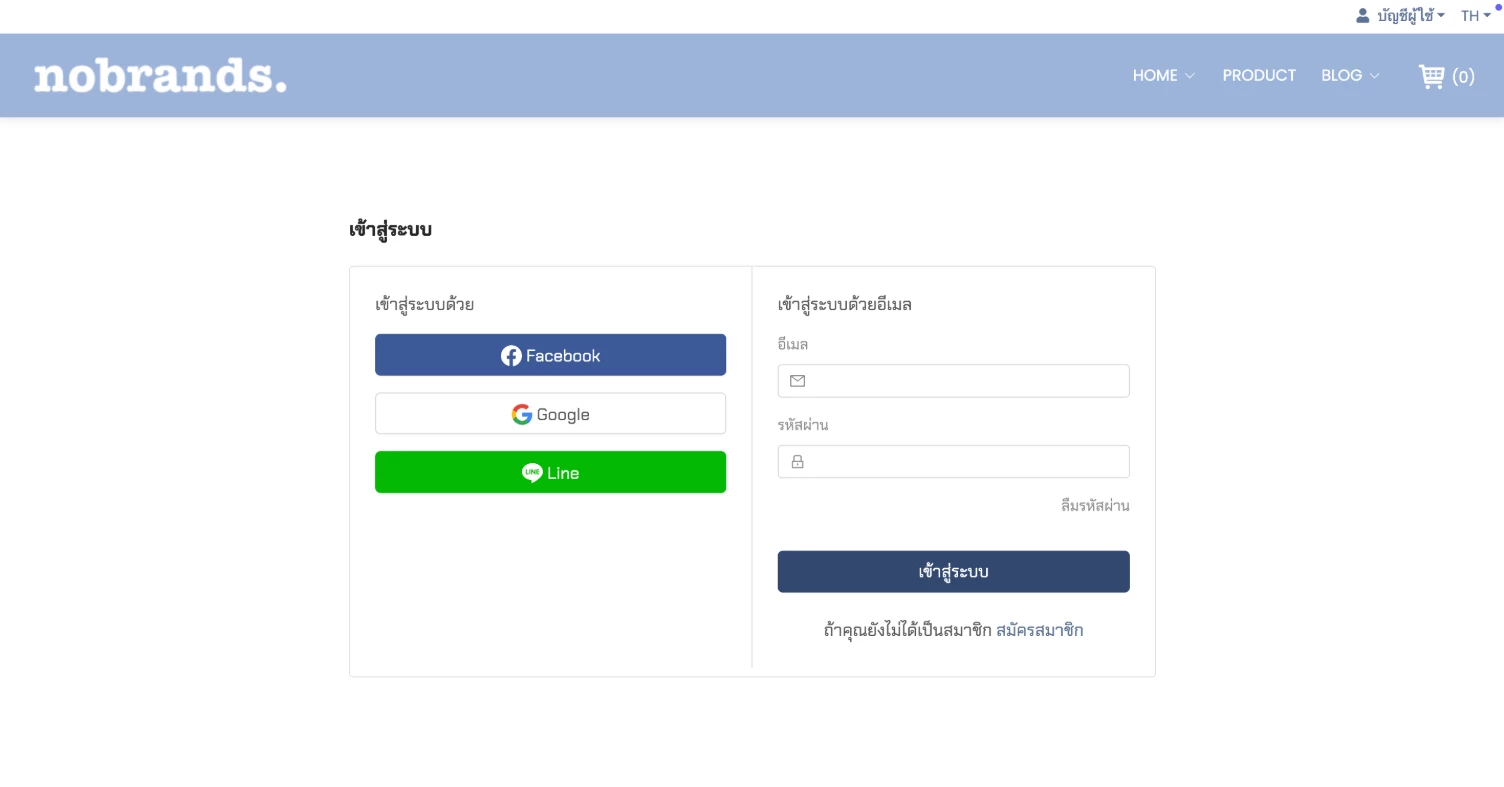 ที่หน้าเว็บไซต์ หน้าเข้าสู่ระบบ
