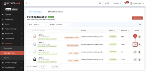 (ตำแหน่งที่ 2) แก้ไขจำนวนแต้มที่ต้องใช้แลกสินค้า