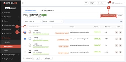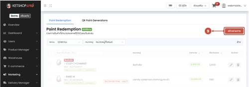 จัดการรายการสินค้าแลกฟรีด้วยแต้มสะสมผ่านเมนู Marketing ▸ Member Point